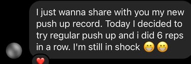 Tuyen purchased a training plan with the goal of unlocking her first pull up after many failed attempts. With only a few weeks on my program, she unlocked her first pull up!